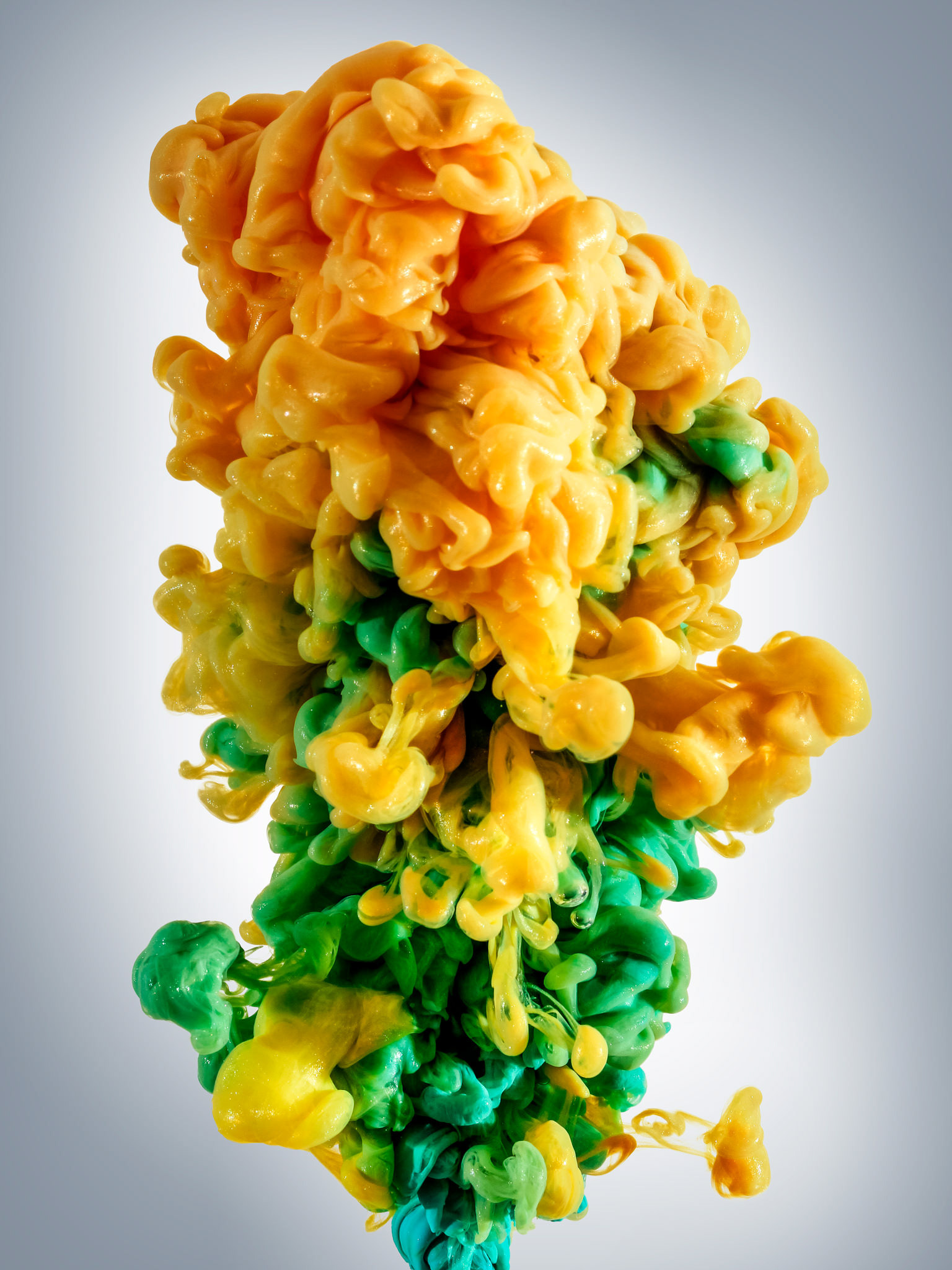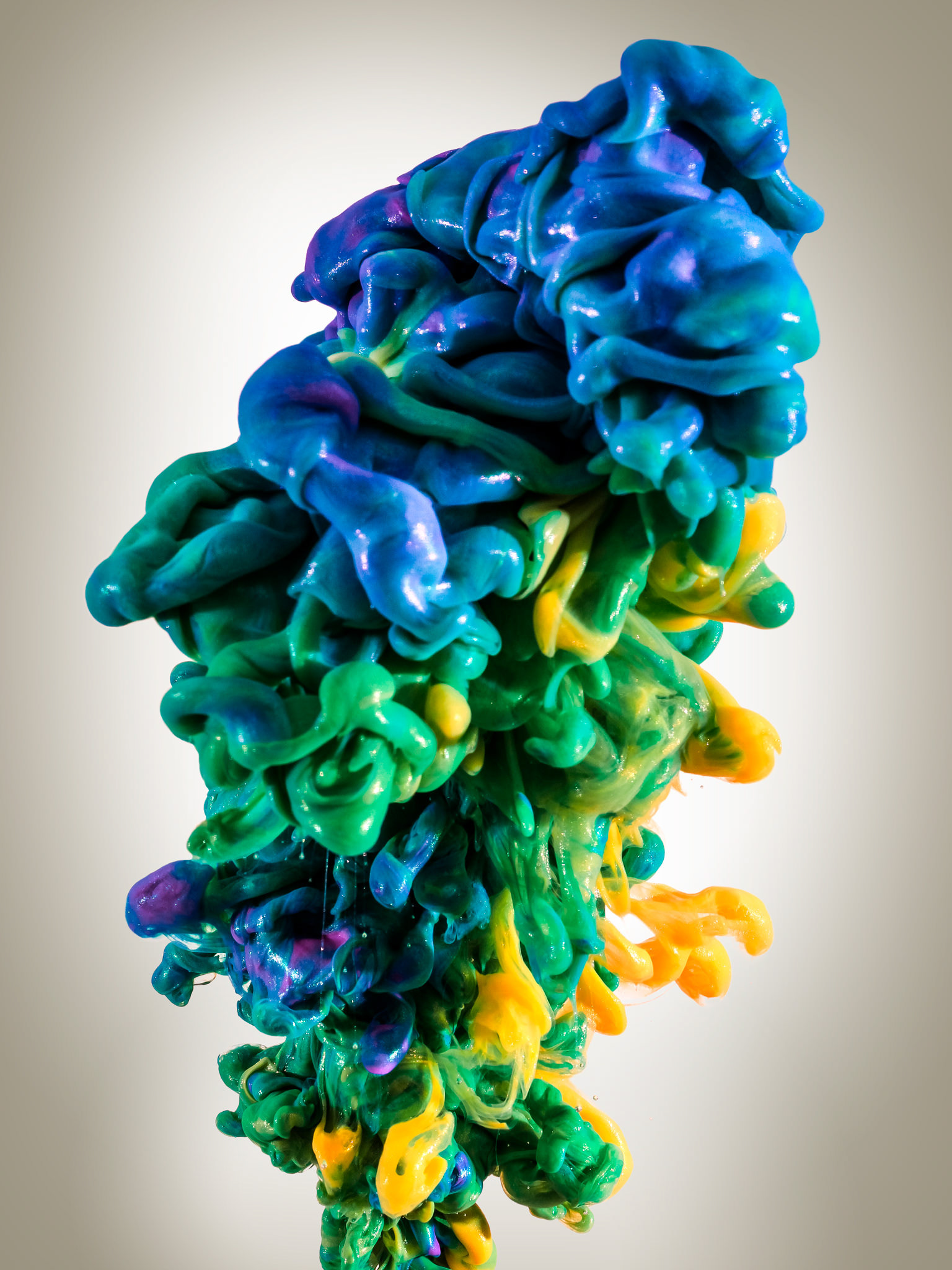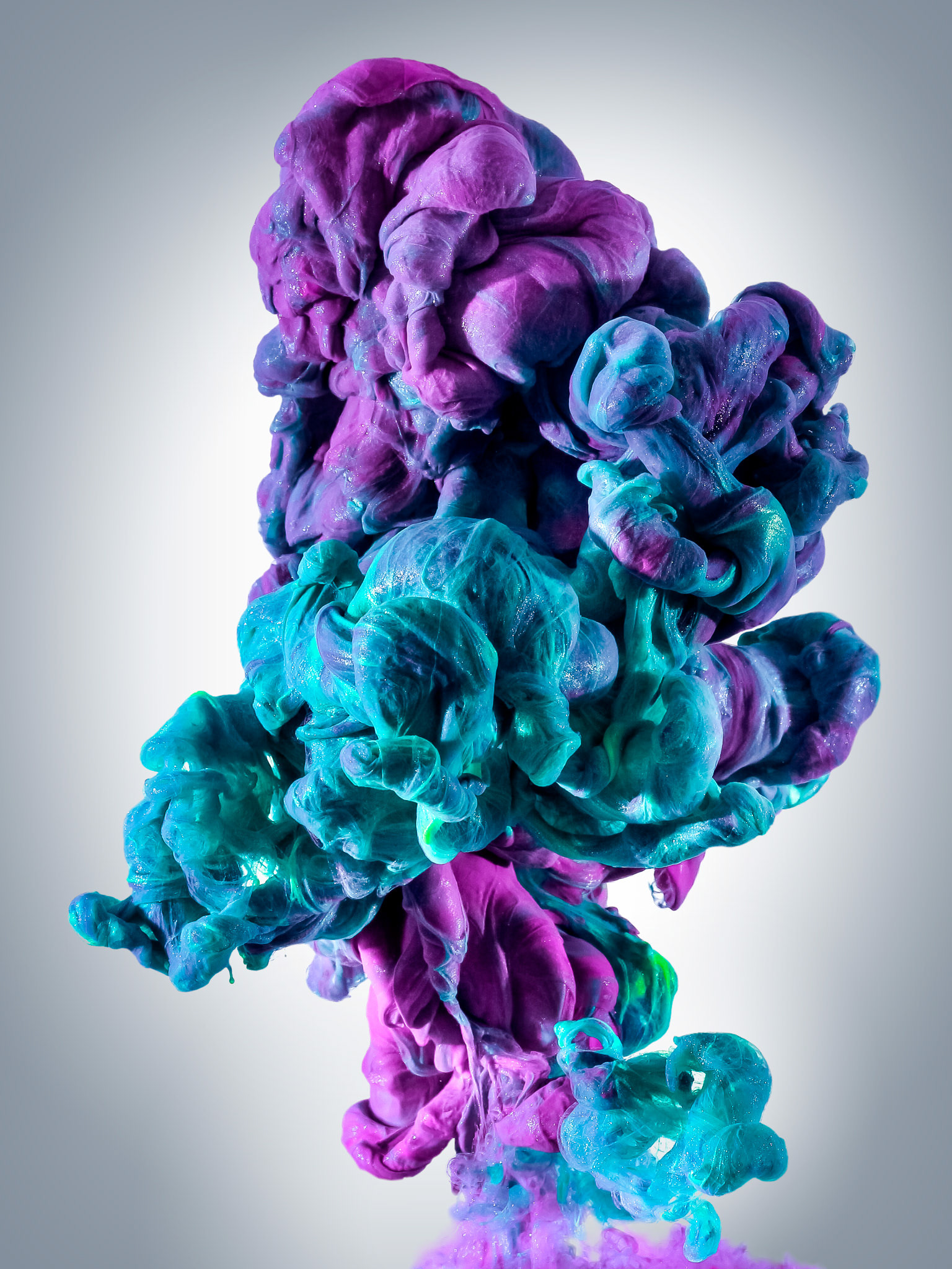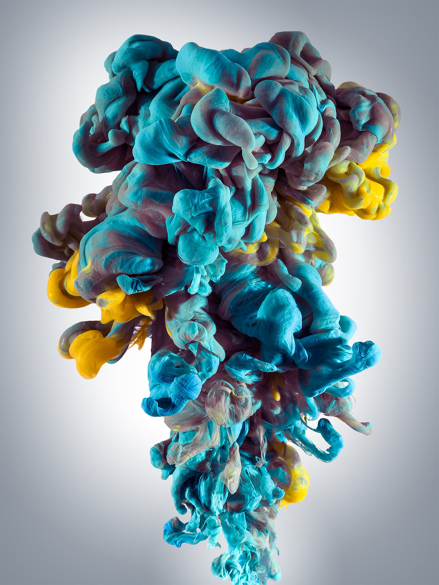 A collection of high-speed photography. Which capture the "organic techno-colored" shapes & patterns created by water & acrylic inks.